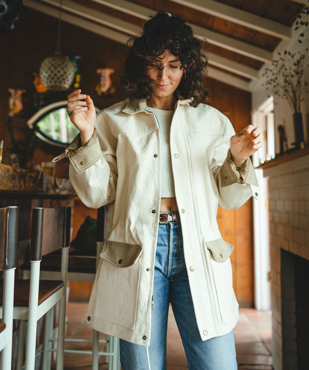 The first piece in the collection is an ode to my grandfather, J.R., a timeless cattleman coat inspired by the one he wore for decades. Coming from a multi-generational cattleman family, it was important to me that this jacket wasn’t just stylish, it had to be as tough, timeless and as playful as the man who inspired it all.