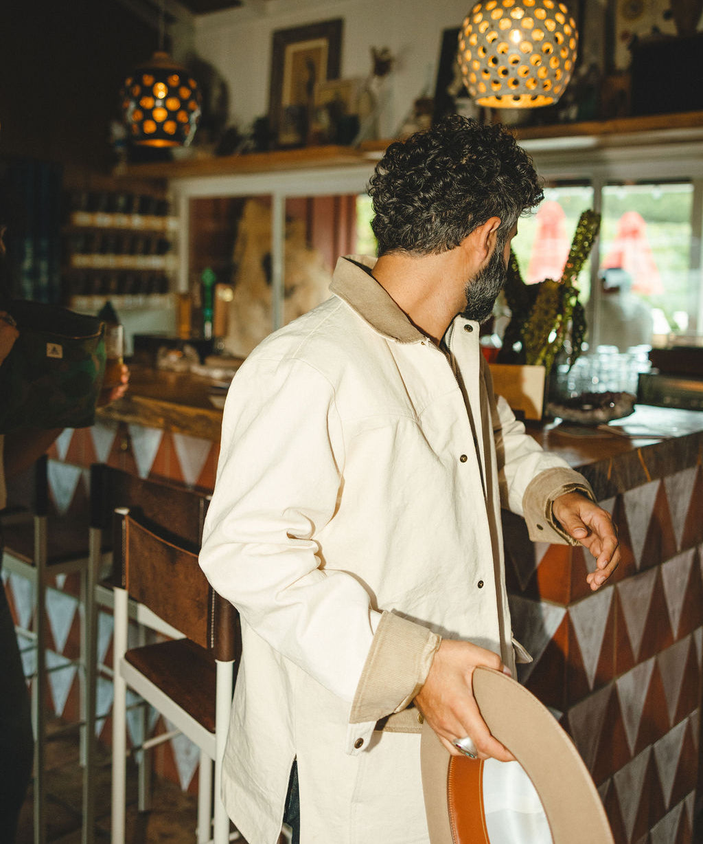 Each jacket is made in small batches, patterned, cut, and hand-sewn in Los Angeles.